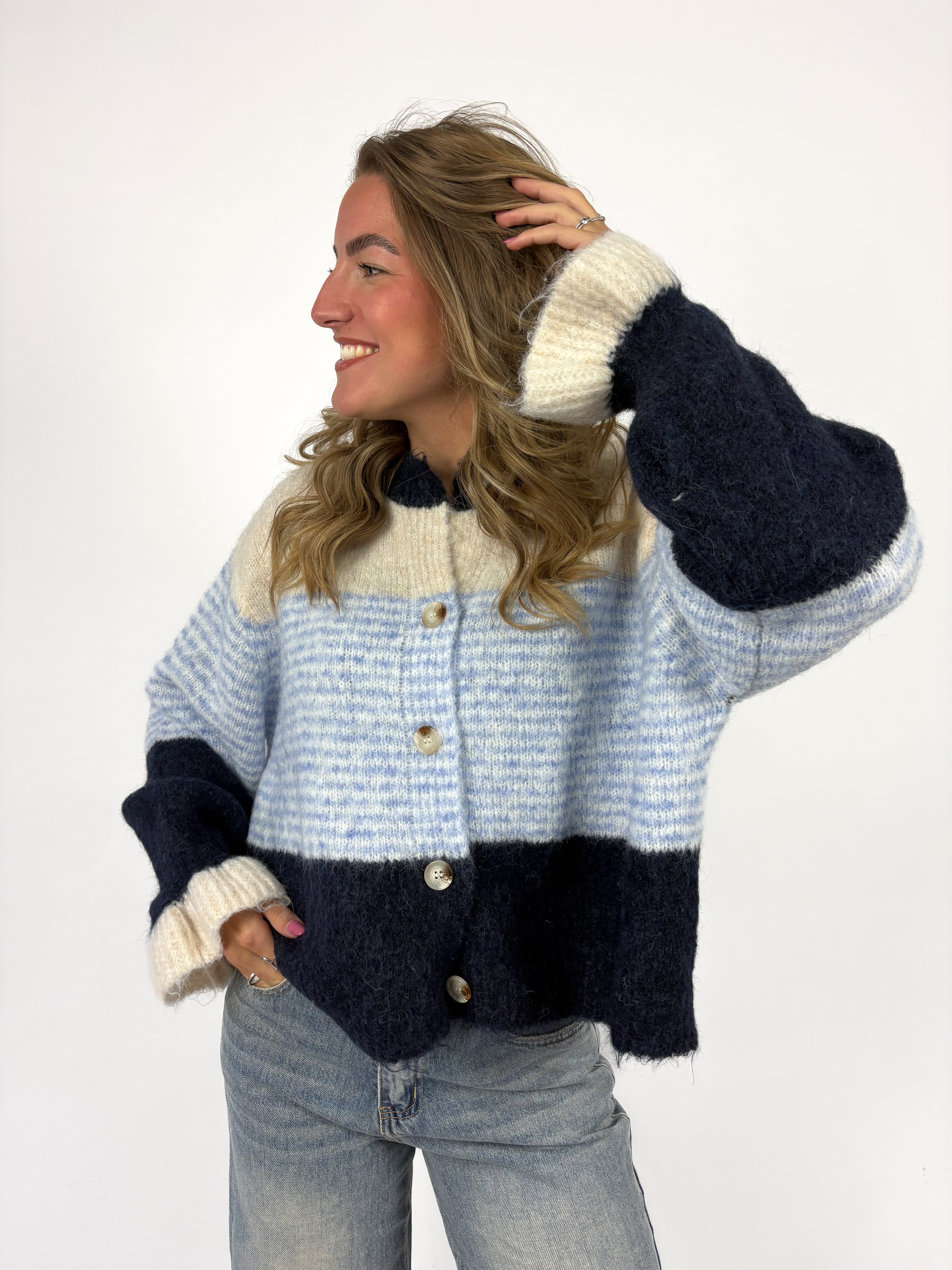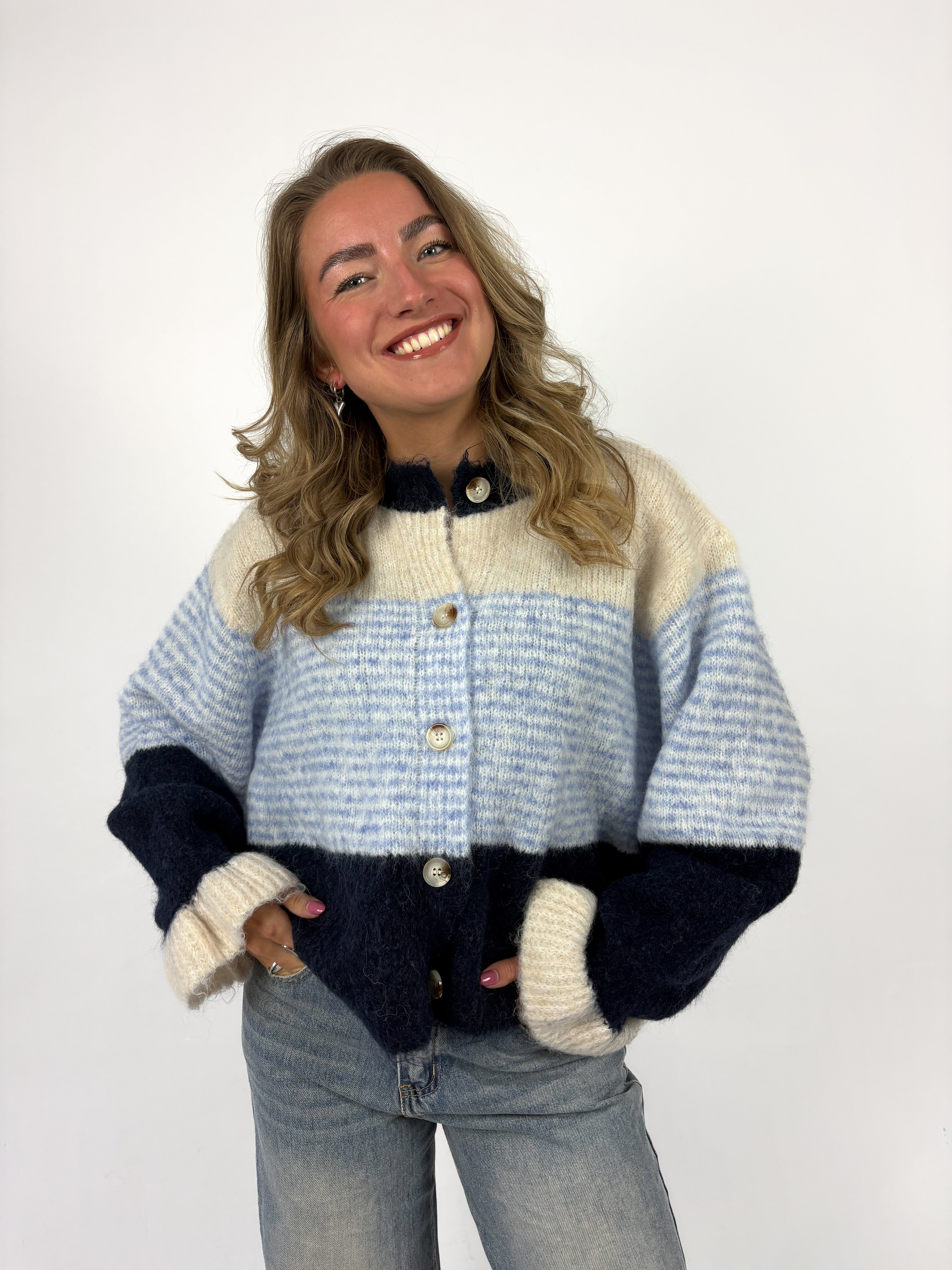 Dit vest is een echte eyecatcher! Het vest is uitgevoerd in drie prachtige kleuren die samen zorgen voor een speels en stijlvol effect. De subtiel uitlopende mouwtjes geven een vrouwelijke touch en de leuke knoopjes maken ’m helemaal af. Perfect om je outfit nét dat beetje extra te geven!